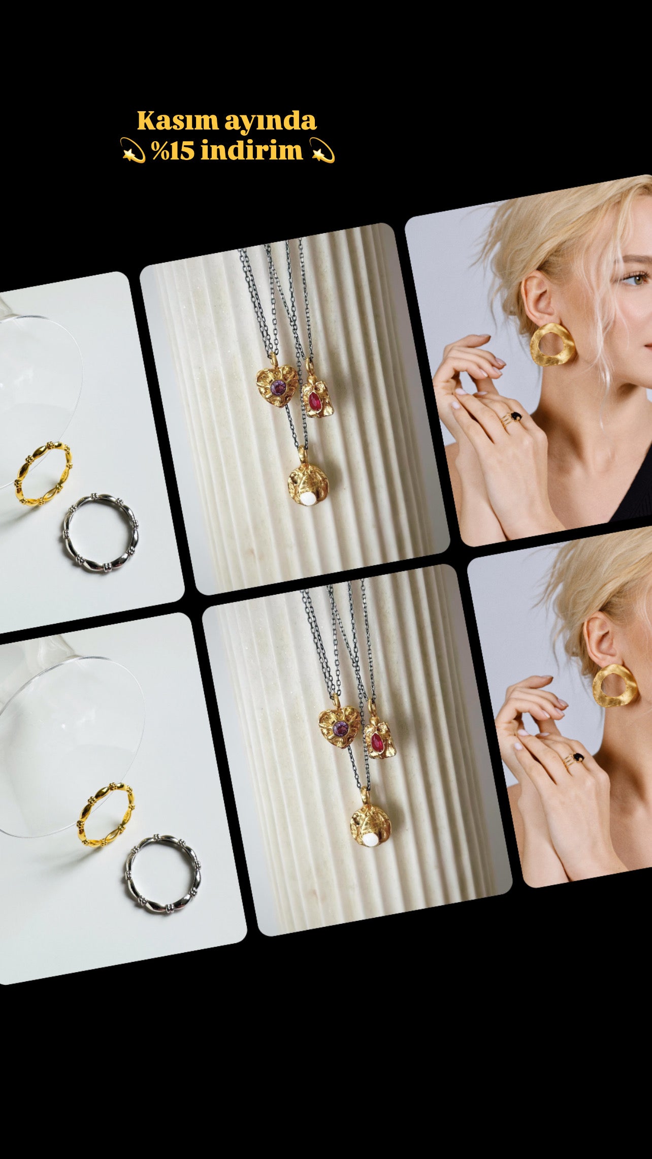 Küpe çifti 2 farklı halka formundan oluşur. Biri diğerine göre daha büyük ve genişdir.
